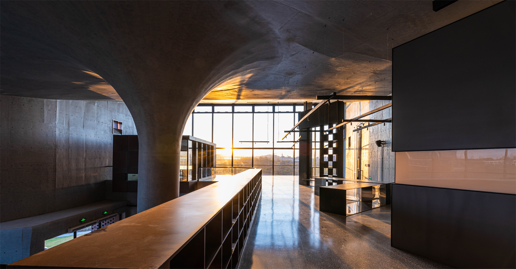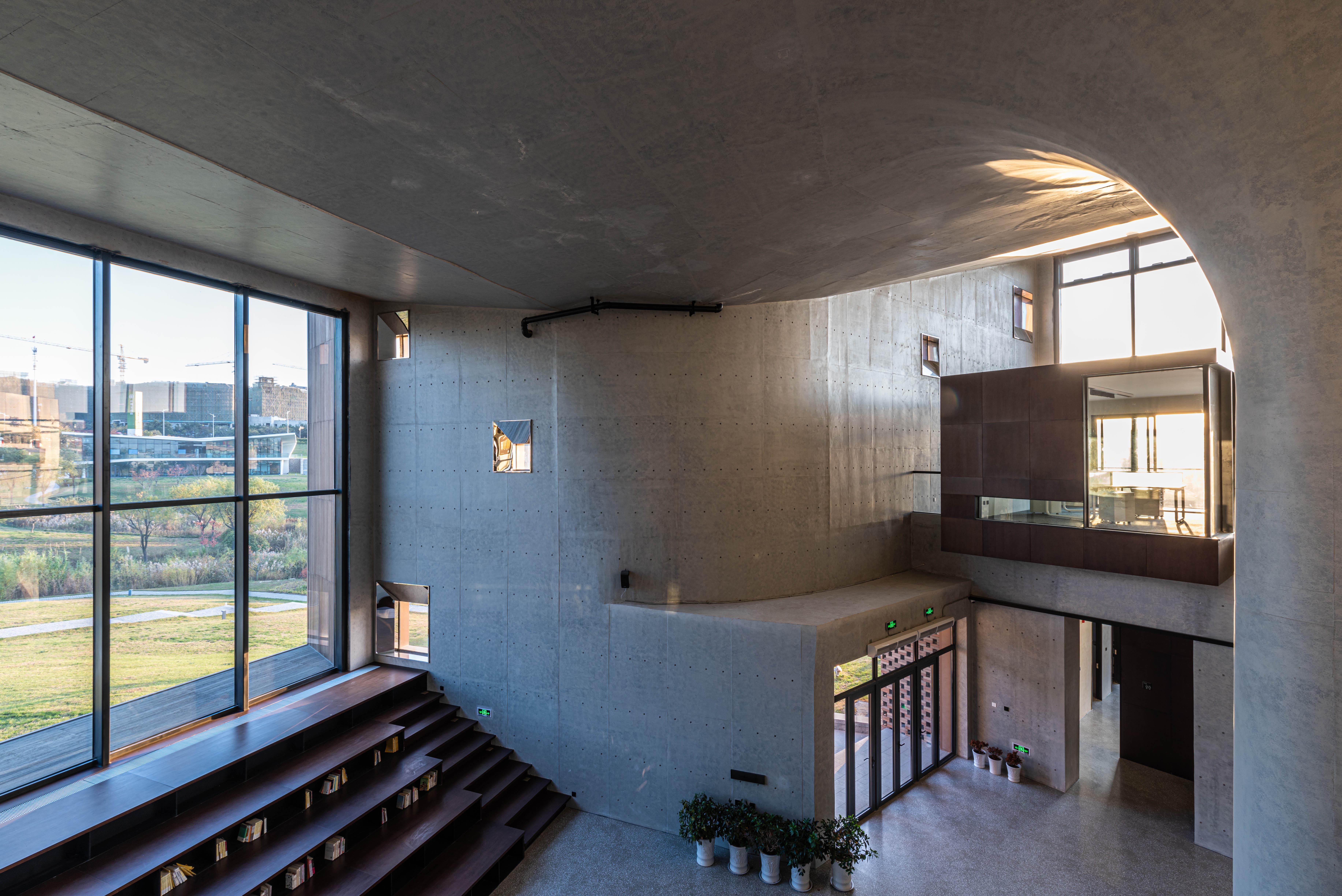 接待大廳、休息區(qū)、展覽區(qū)、室內小劇場、辦公區(qū)、會議區(qū)、室外小劇場和自然環(huán)境相互交融并置,相互之間流線獨立又彼此滲透。