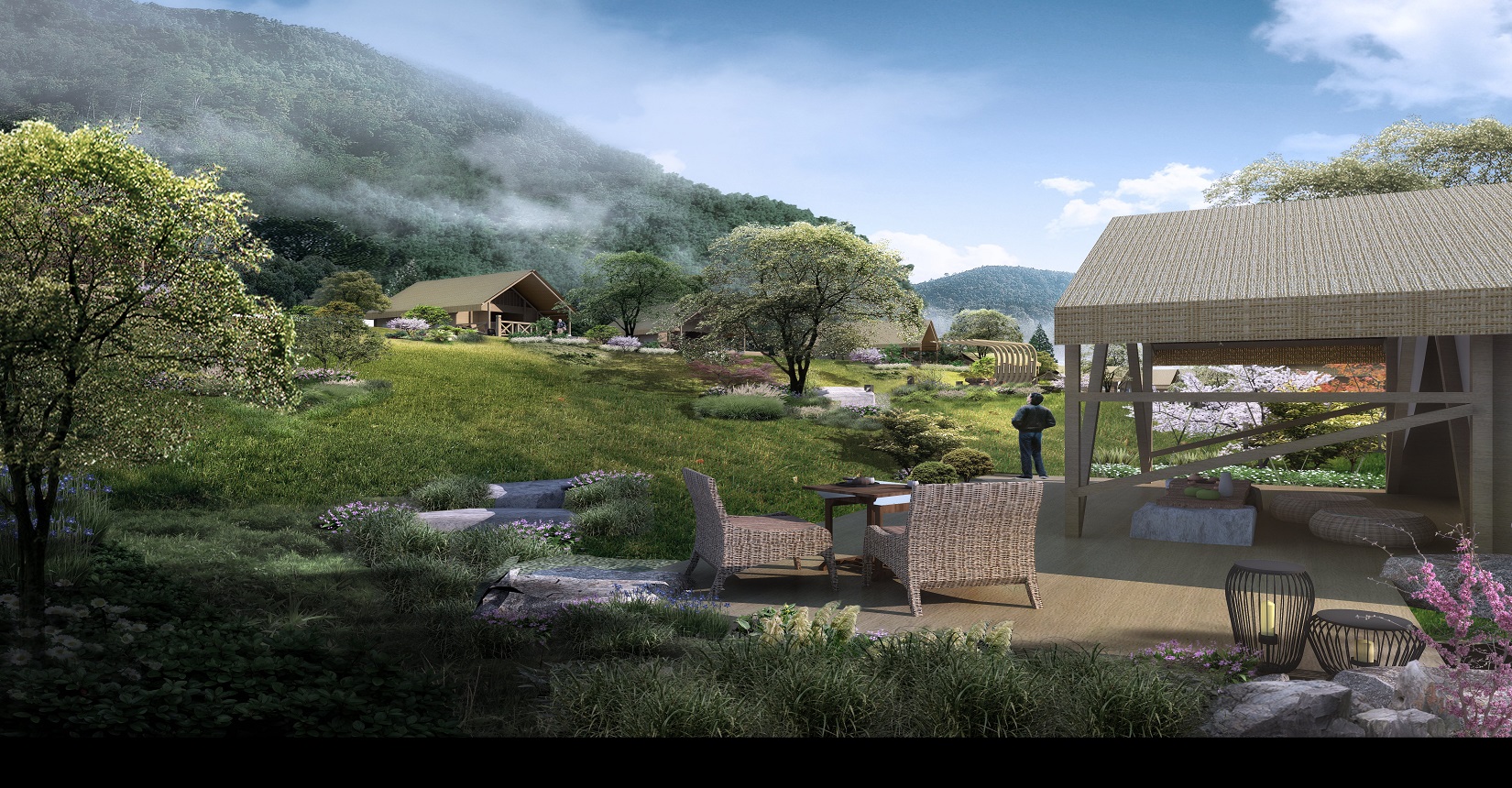 本項(xiàng)目的定位為自然、野奢的景觀風(fēng)格。對(duì)于野奢度假酒店景觀環(huán)境設(shè)計(jì)遵從“野”“奢”兩點(diǎn),融入荒野生態(tài)的設(shè)計(jì)理念,又要與場(chǎng)地相融合、與原生態(tài)相映、與當(dāng)?shù)氐拿袼罪L(fēng)情相交匯,突出當(dāng)?shù)氐奈幕黝},強(qiáng)調(diào)高品質(zhì)的自然、野奢度假,從而打造出一個(gè)具備個(gè)性與特色,使游客能夠享受到自然野趣體驗(yàn)的景觀環(huán)境。